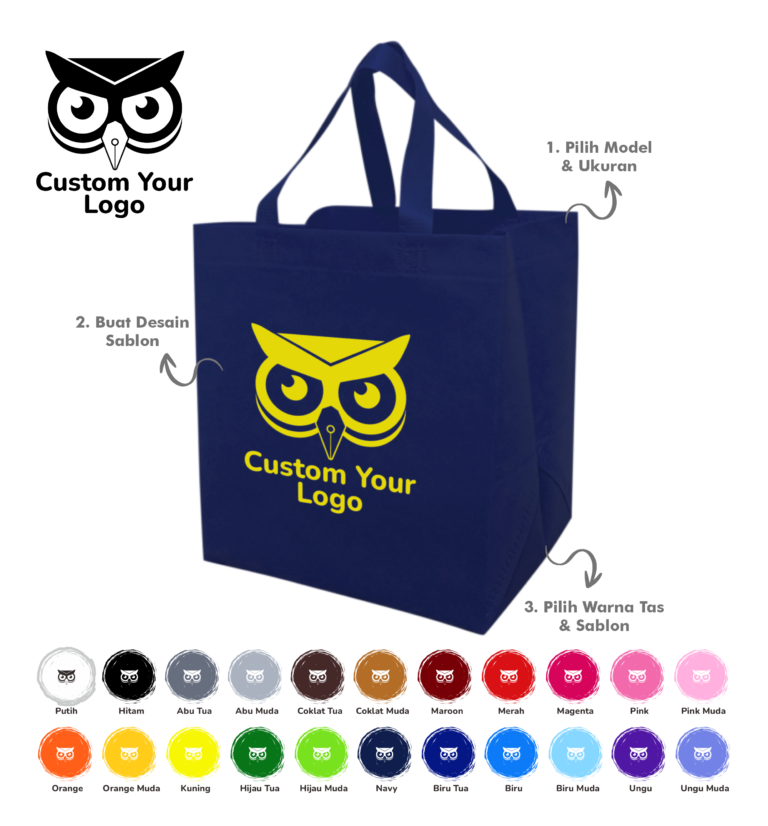 Custom tas spunbond tanpa ribet! Bebas pilih ukuran, model, dan desain sesuai kebutuhan. Proses cepat, hasil rapi, dan kualitas terjamin